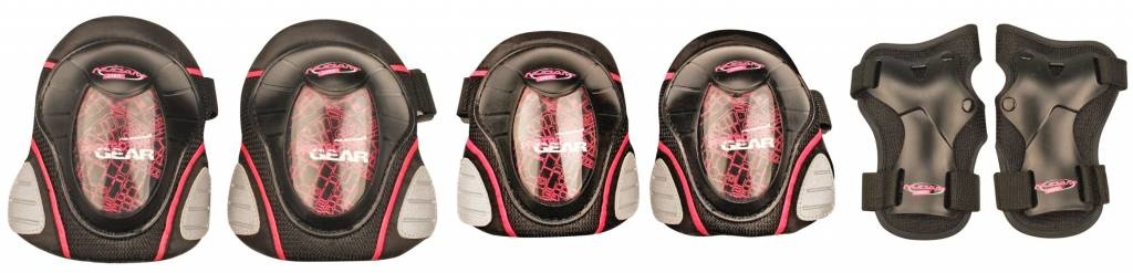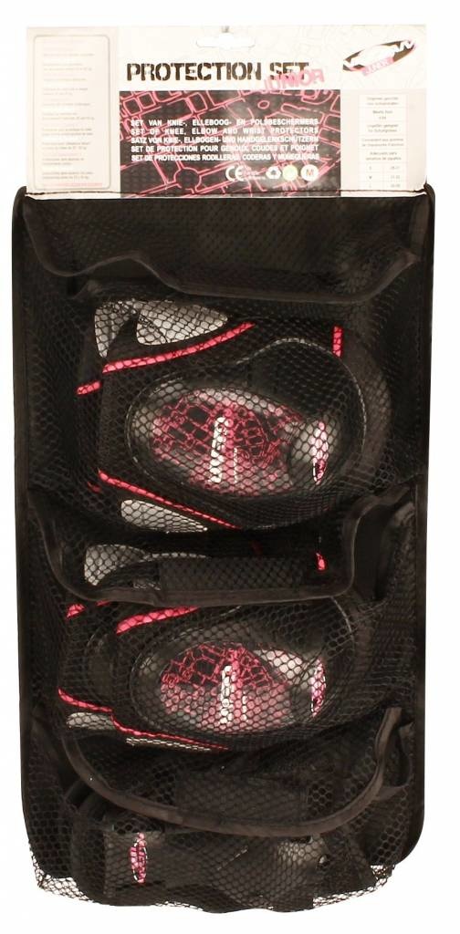 Inhoud (set): 1 paar pols-, elleboog- en kniebeschermers