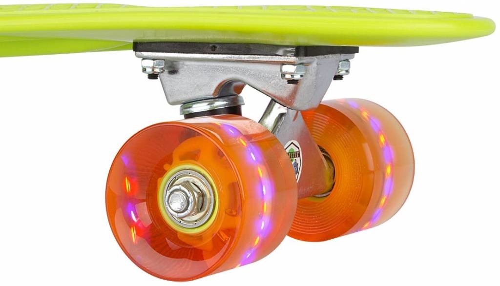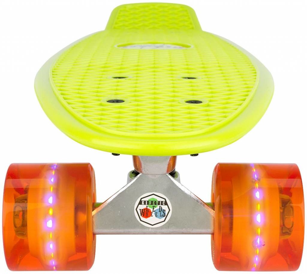In de jaren 70' waren deze trendy skateboards niet uit het straatbeeld weg te denken, deze trend is nu weer helemaal terug, gemakkelijk overal mee naar toe te nemen en ontzettend wendbaar. De felle, opvallende kleuren maken het skateboard nog extra aantrekkelijk, daarbij lichten de wielen op tijdens het rijden, door de kinetische oplading zijn batterijen niet nodig